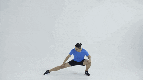 侧压腿就是以前体育课上的动作,要领也类似,膝盖不要过脚尖,脚后跟不要抬起来,被压的那条腿要伸直,感受内侧肌肉被拉伸的感觉。侧卧抬腿的动作示范如下。也可以将上面那条腿垂直弯曲放到前面,抬后腿,这样的动作难度更大一些。